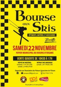 la bourse aux skis est un évènement incontournable de l’Oisans à l’automne. Vous y trouverez du matériel de ski, snow, ski de fond, randonnée…