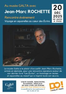 Le musée Galta a le plaisir d’accueillir Jean-Marc Rochette, artiste et alpiniste, pour une rencontre-signature autour de son dernier livre Les Écrins, un hommage en textes et aquarelles au massif qui a inspiré toute son œuvre. Au programme : ·