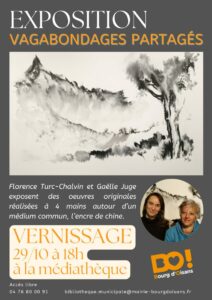 le mercredi 29/10 à 18h à la médiathèque en présence des artistes, Florence Turc-Chalvin et Gaëlle Juge. accès libre